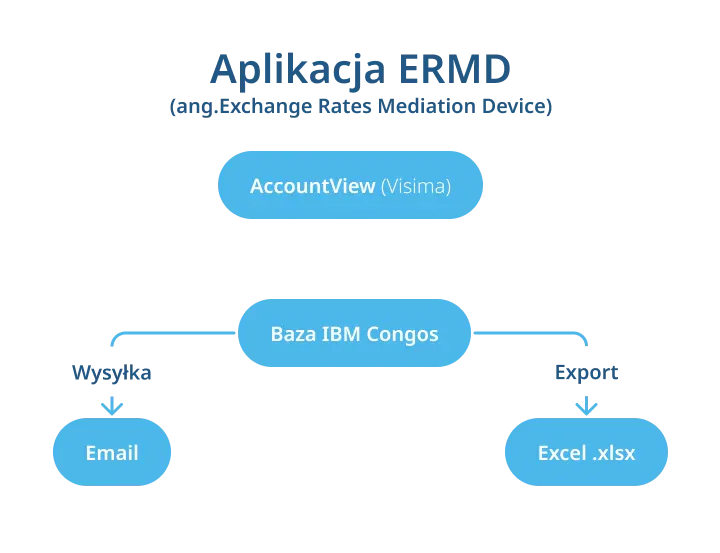 Aplikacja ERMD (ang.Exchange Rates Mediation Device) służy do przetwarzania danych walutowych i aktualizowania ich do systemu AccountView (firma Visma), dalszego exportu danych do bazy danych IBM Cognos. Istnieje możliwość wysłania ich pocztą elektroniczną, bądź pobrania w formie pliku w formacie Excel (xlsx).
