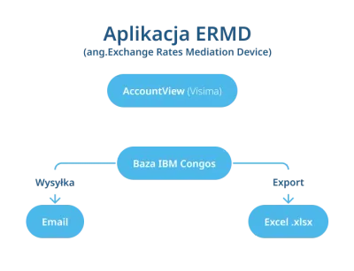 Aplikacja ERMD (ang.Exchange Rates Mediation Device) służy do przetwarzania danych walutowych i aktualizowania ich do systemu AccountView (firma Visma), dalszego exportu danych do bazy danych IBM Cognos. Istnieje możliwość wysłania ich pocztą elektroniczną, bądź pobrania w formie pliku w formacie Excel (xlsx).
